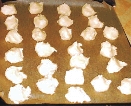 Das Backblech mit Backpapier auslegen und darauf die Teigportionen geben. Hierfür kann man einen Teelöffel, oder auch einen Spritzbeutel nehmen.
