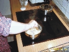Anschließend den Teig wieder von der Kochstelle nehmen und etwas abkühlen lassen.