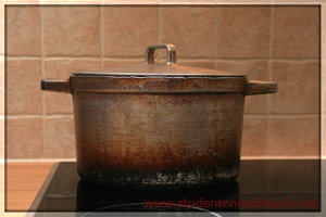 Der gute alte gusseiserne Kloßtopf (siehe Foto) von meiner Oma ist Klasse, wenn man einen richtig coolen Topf haben will, den nicht jeder hat ;-). Der Vorteil: Er leitet sehr gut die Wärme und speichert sie auch lange im gesamten Topf. Der Nachteil: er leitet sehr gut die Wärme *g*, d.h. auch die Henkel und der Deckel werden und bleiben lange ziemlich heiß. Töpfe, bei denen ein Komplettset aus 5 unterschiedlichen Töpfen so um die 15-20 EUR kostet, sind in der Regel nicht zu empfehlen, da sie meist aus sehr dünnem Metall bestehen und sich nach meiner Erfahrung bei Erhitzung schnell hochwölben und auch generell schnell verformen bzw. regelrecht verbiegen. Etwas schwerere Edelstahlkochtopfsets, wie es sie in allen möglichen Kombinationen zu kaufen gibt, sind aus meiner Sicht eine gute Alternative für Kochbeginner. Sie sind preiswert in der Anschaffung und halten die Zeit in der WG oder im Studentenwohnheim gut aus. Schwierig wird es, wenn man einmal etwas hat anbrennen lassen. Dann kann man die Töpfe in der Regel wegwerfen. Man kann zwar das angebrannte meist gut entfernen, aber in der Regel brennt in dem Topf immer wieder etwas an. Die Creme de la creme der Kochtöpfe sind dann allerdings die hochwertigen und (leider, aber nachvollziehbar) teuren Kochtöpfe. Seit kurzem kann ich ebenfalls so ein tolles Topfset mein eigen nennen (original Profi-Collection von Fissler, erworben über cookplanet) und die Unterschiede sind tatsächlich erkennbar! 1. Die Deckel sind extrem dicht. Flüssigkeit und damit auch Aroma bleiben im Topf. Man kann auf sehr niedriger Stufe kochen, weil (bei geschlossenem Deckel) noch genügend Energie vorhanden ist. 2. Zudem speichern die dicken Böden super die Wärme und verkürzen damit die Garzeit um einiges. 3. Sie lassen sich sehr gut per Hand reinigen, sind aber auch spülmaschinengeeignet. 4. Sie sind backofenfest. Also alles in allem wirklich toll! (Ich hab neulich übrigens gehört, dass gute Töpfe einen leicht nach innen gewölbten Boden haben sollen. Dieser verformt sich beim Erwärmen (begradigt sich) und passt sich somit optimal an die Herdplatte an, so dass kein Spalt mehr vorhanden ist.) Konnte ich noch nicht beobachten, aber vielleicht hab ich auch nicht genau genug geguckt ;-).